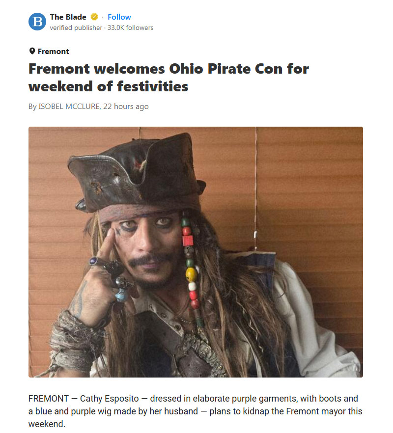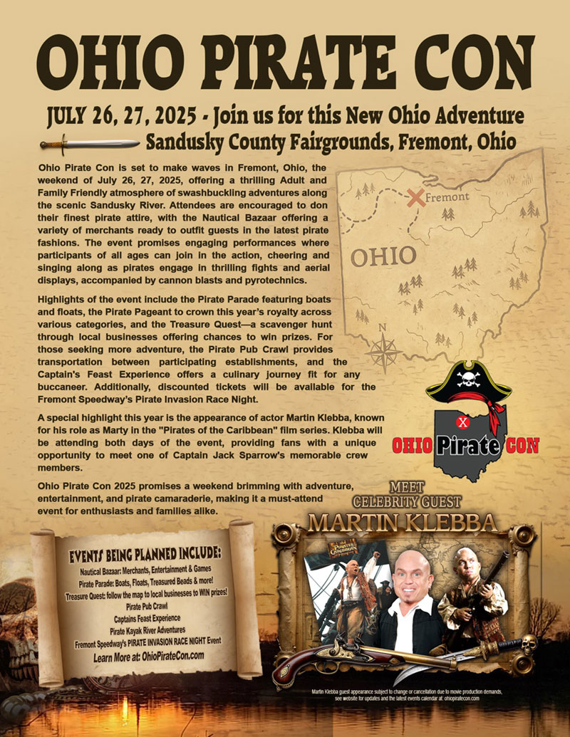 OHIO PIRATE CON will have a featured full page article in the OHIO COMPASS Magazine for their Summer-2025 Edition. Thank you to the SANDUSKY COUNTY VISITORS BUREAU for designing, writing and making the deadline for submission.